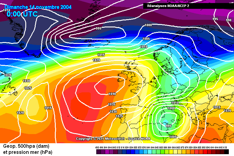 Opća sinoptička situacija 14.11.2004. u 00 UTC; izvor: meteociel.fr
